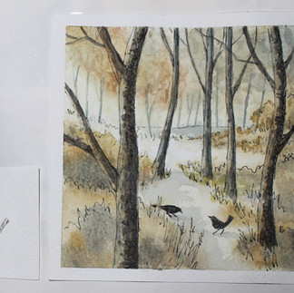 Sometimes I work in series, and not necessarily in the same period of time. Keeping a record of my ideas for a series in my sketchbook helps the group of paintings stay in the same vein. When I started out as an working artist, I didn't do that very well, and it is something I have learned to do along the way. As I generally only work up to VII (seven) paintings in a series, I will also try to keep them all in the same book. Some artists work their series differently. Some work on all of them at the same time, or within a period with no other works in progress, and some keep working on a theme with numbers up into the twenties and beyond. It is all a matter of choice and inspiration. For me, it is about keeping things fresh and limited.